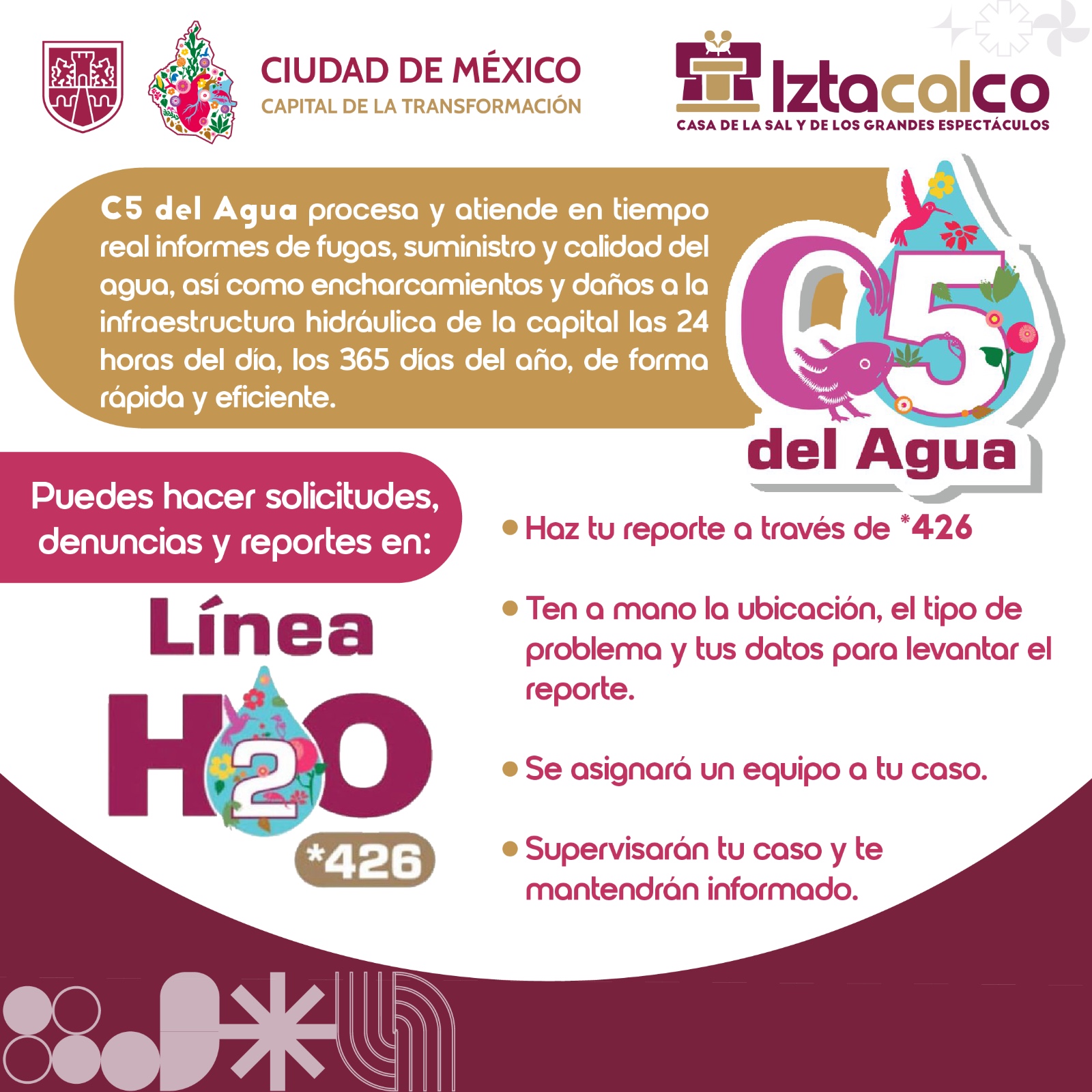 Las reparaciones se realizan principalmente en avenidas secundarias, competencia directa de la alcaldía; sin embargo, cuando se presentan incidencias en avenidas primarias, se mantiene una coordinación permanente con la Secretaría de Gestión Integral del Agua (SEGIAGUA) para atender de manera inmediata los reportes y evitar el desperdicio de agua potable.