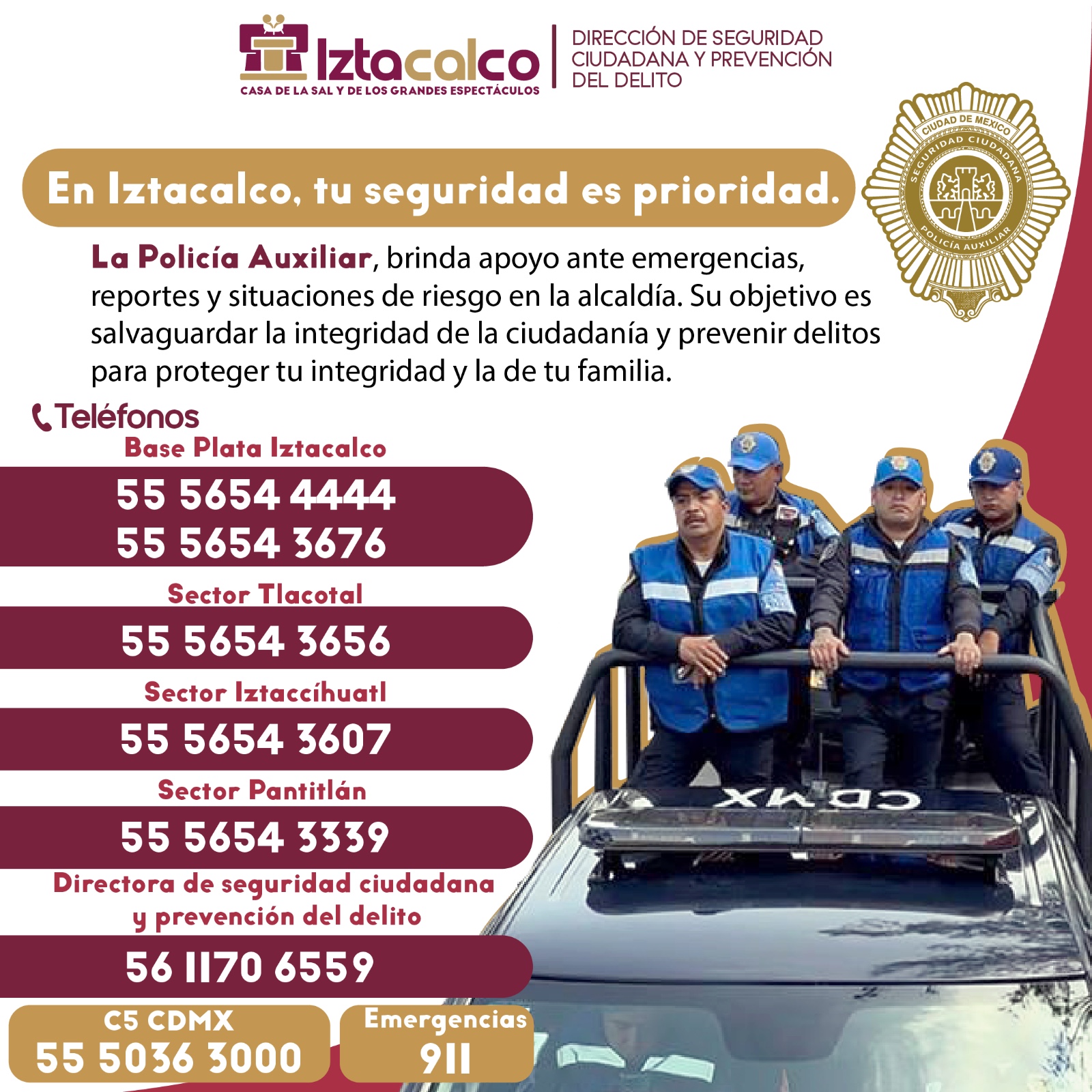 Estos operativos han contado con la participación de personal de la Dirección de Gobierno, la Unidad Departamental de Vía Pública y la Policía Auxiliar de la Alcaldía Iztacalco, en coordinación con la Secretaría de Seguridad Ciudadana de la Ciudad de México (SSC), la Secretaría de la Defensa Nacional (DEFENSA), la Secretaría de Marina (SEMAR) y la Guardia Nacional.